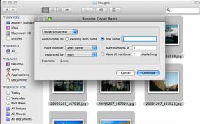 Create an Automator workflow, available from the Finder contextual menu, that functions as a batch renaimng tool for Finder items. |