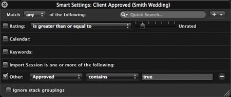 When you select this Smart Album in Aperture, you will see the images they have chosen. Note that the Smart Album does not update dynamically. You must refresh its contents by selecting another project or album and then selecting the Smart Album again.
