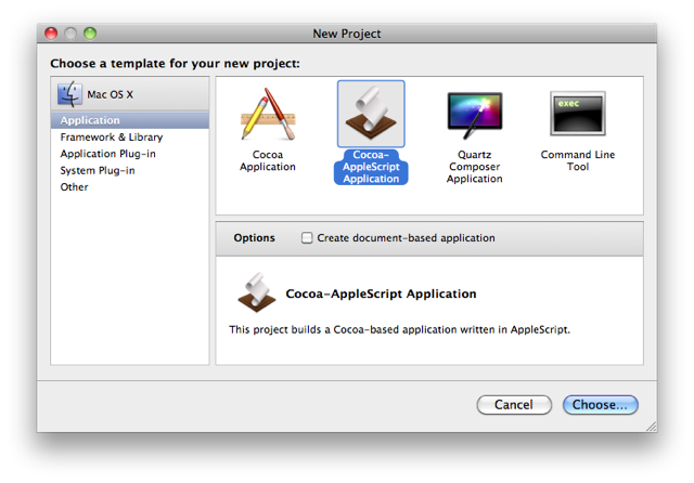 - AppleScript-Cocoa Templates. Application templates in Xcode now include one for developing a Cocoa-AppleScript application. These templates include a new interface nib that provides access to the entire library of Interface Builder elements, which can now be linked to AppleScript source code using the same outlets, actions, and bindings that are used by the other development languages of Mac OS X.