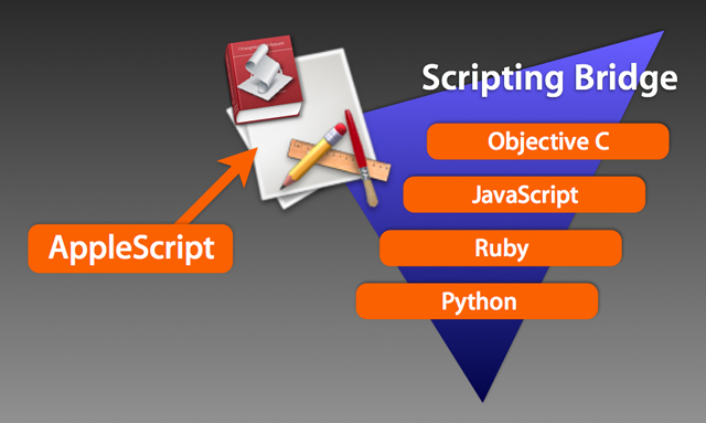 For years, developers and solution providers have sought an easy way to include similar abilities within other common programming languages. Mac OS X v.10.5 includes a new framework called Scripting Bridge that enables common languages, such as Ruby, Python, and Objective-C, to easily send Apple Events to scriptable applications.