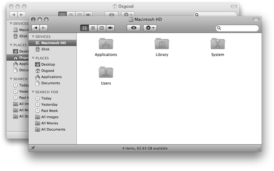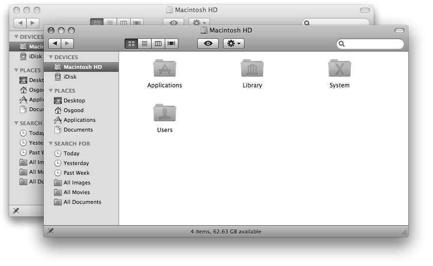 You’ll notice that the frontmost Finder window now displays the contents of the startup disk:
