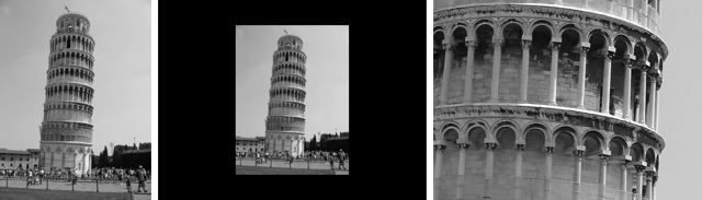 Use of the pad command. (L to R) Normal, image is smaller than the indicated pad area, image is larger than the indicated pad area.