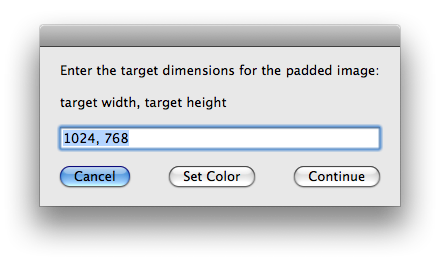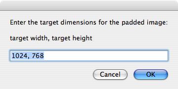 display dialog "Enter the target dimensions for the padded image:" & ¬