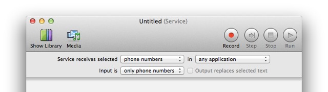 (below) An example service, created using the new Data Detectors input filtering options, that enables to dialing of phone numbers embedded within text in a web page: