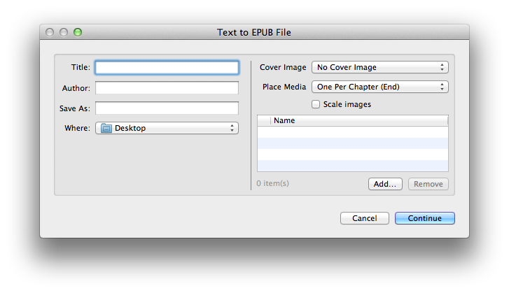 - Text To EPUB File This action creates an iBooks-compatible EPUB file from the text files passed to it. Optionally, the book can contain movie, audio, and image files chosen by the user. Optionally, the formatting of the passed RTF file can be preserved in the book. (learn more)