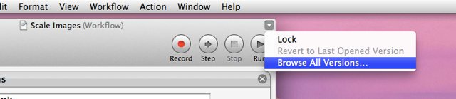 Like many other document-based applications in Lion, Automator fully supports the new Versions feature so you can easily return a workflow document to a previously saved state.