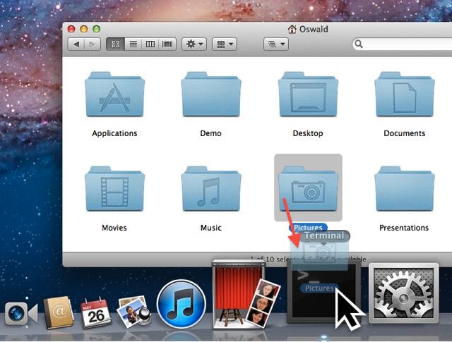 1. Drag a folder from the Finder to the Terminal icon