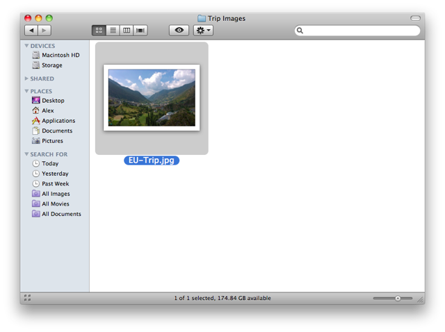 Select one or more image files in the Finder, and click the Action Menu in the Finder window toolbar. The newly created service will now appear on the displayed menu: