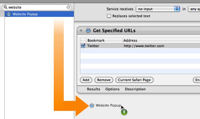 BEFORE YOU BEGIN: This service workflow requires the installation of the Website Popup Automator action. Download the installer for this Automator action. NOTE: Installation requires an administrative password.